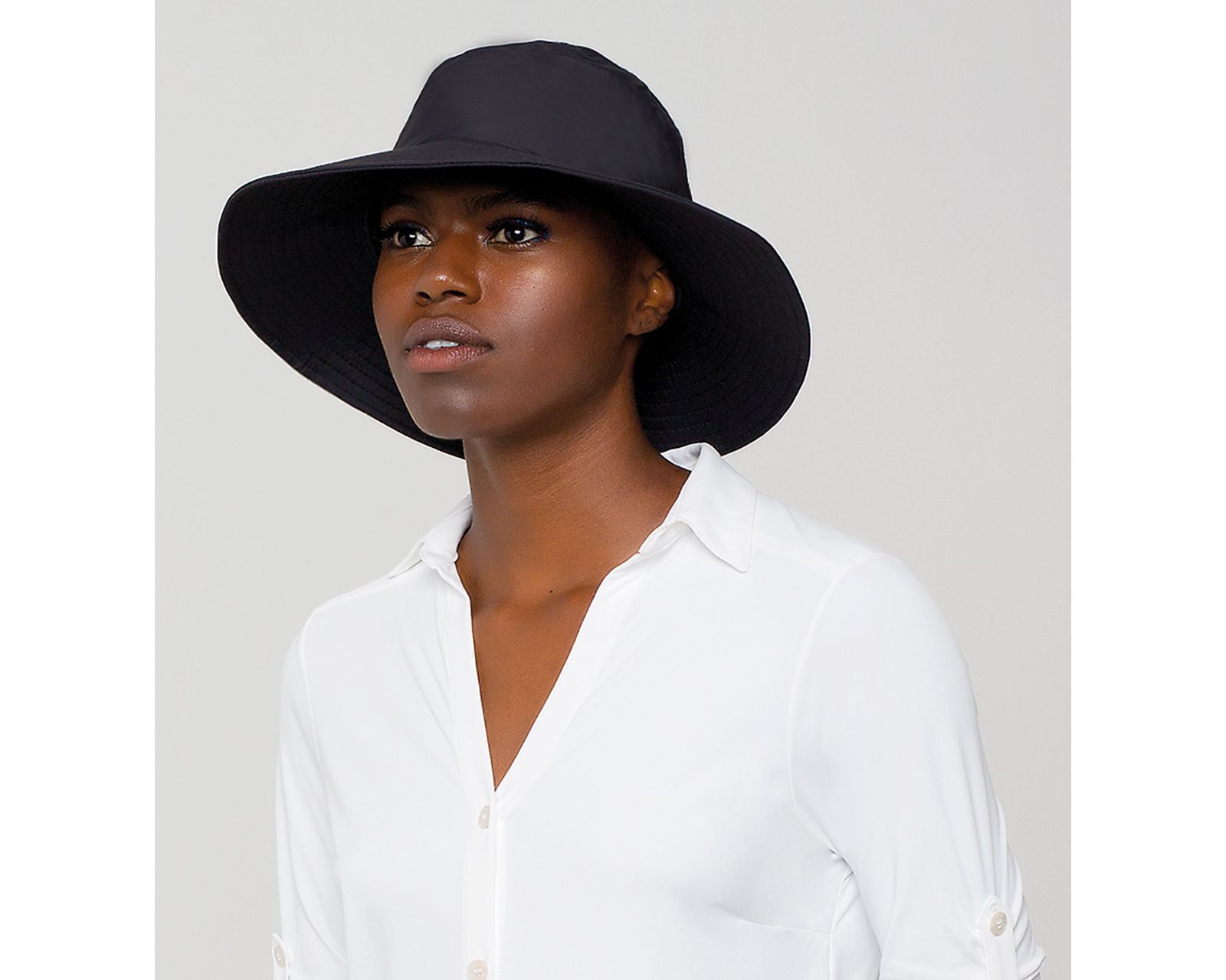 É um modelo versátil, que pode ser usado em diversas ocasiões e é facilmente transportado em malas de viagem. Modelo básico em cores lisas, permite inúmeras combinações, em especial com saídas de praia ou vestidos longos. Possui fio de nylon interno na aba que ajuda na estruturação, evitando que o chapéu dobre com o vento; Benefícios (Atributos) Proteção não sai com lavagens. Possui aba larga estruturada para máxima proteção do rosto. Os passantes ao redor da copa acomodam uma bandana, que pode ser removida ou trocada por outra que você tenha em casa.